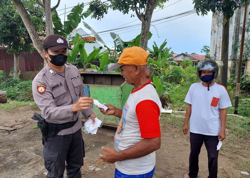 “Kami terus membagikan masker kepada warga yang kami dapati tidak memakai masker Saat berada di tempat umum, Ia pun tak segan untuk memberikan teguran dan mengarahkan agar warga memakai masker dengan baik dan benar saat beraktivitas di luar rumah, sehingga masker berfungsi sebagai mana mestinya,” Kata Iptu Abdul Khori.