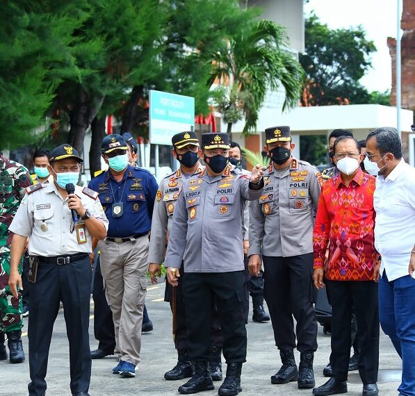 Bali – Kapolri Jenderal Listyo Sigit Prabowo meninjau langsung Pelabuhan Benoa, Bali untuk memastikan proses penegakan protokol kesehatan (prokes) hingga pelaksanaan masa karantina, bagi Pelaku Perjalanan Luar Negeri (PPLN) yang masuk ke Indonesia, untuk mencegah penyebaran virus Covid-19 varian Omicron.