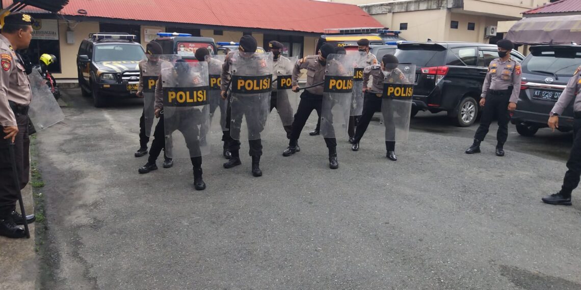 Kegiatan latihan Dalmas yang di gelar di halaman depan ruang Sat Samapta Polres Bontang yang di pimpin KBO Sat Samapta Polres Bontang Iptu I Gede Ika Wardana Rabu (26/02/22)