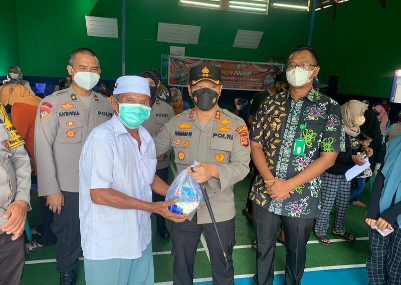 Dalam kesempatan tersebut Kapolres juga memberikan bingkisan berupa paket sembako kepada masyarakat yang datang lebih awal untuk mengikuti Vaksinasi dosis 1 ,2 dan Booster