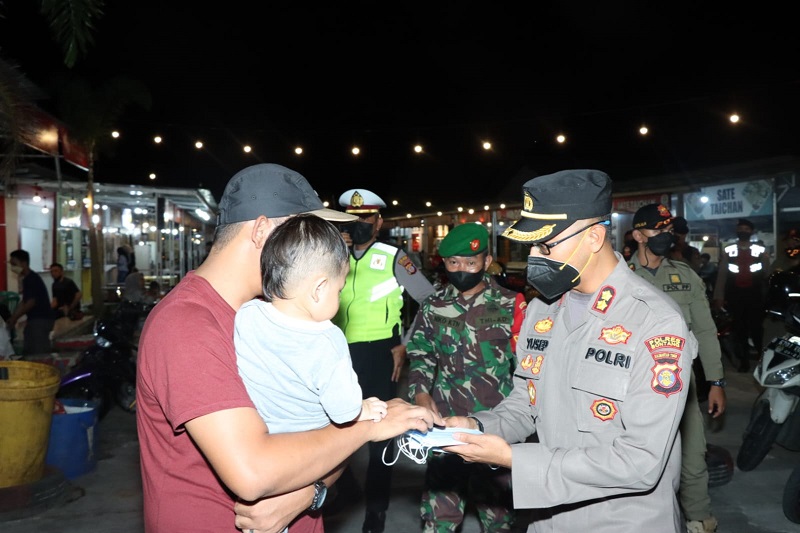 Dalam Kegiatan Patroli Yustisi Protokol Kesehatan Kapolres Bontang bersama tim gabungan memberikan himbauan terhadap pemilik cafe dan pengunjung agar mematuhi prokes dengan cara mematuhi 5M, serta memberikan masker kepada masyarakat pengunjung yang tidak memakai masker.