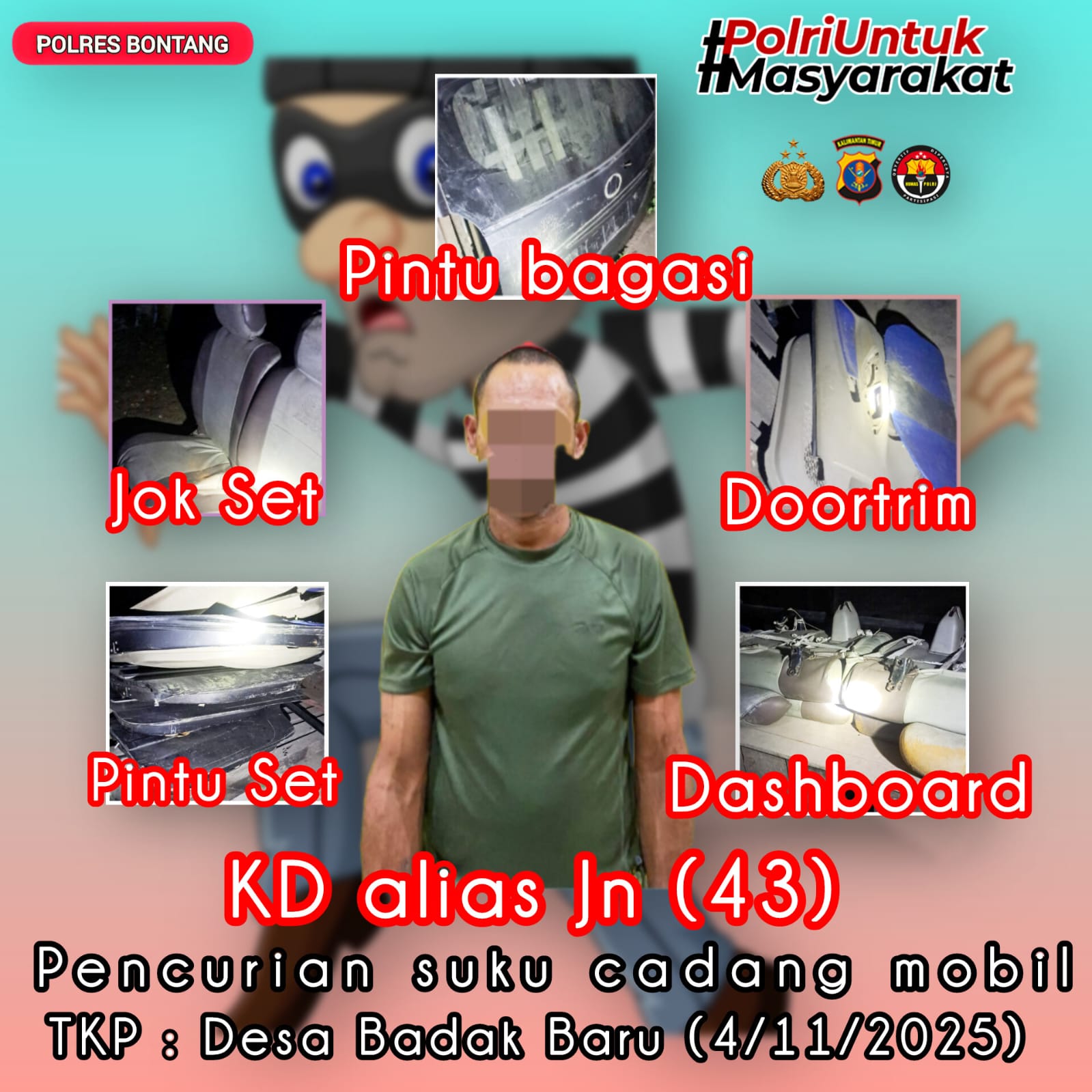 Bermula ketika Usman (pelapor), menerima informasi bahwa beberapa suku cadang mobil Daihatsu Xenia miliknya telah hilang pada Selasa (4/11/2025), mobil itu terparkir di depan rumah saksi yang juga seorang mekanik untuk diperbaiki. Dari hasil olah TKP, pemeriksaan saksi, pengumpulan barang bukti, dan penyelidikan, mengarah kepada terduga KDS alias Joni, warga Desa Tanjung Limau.