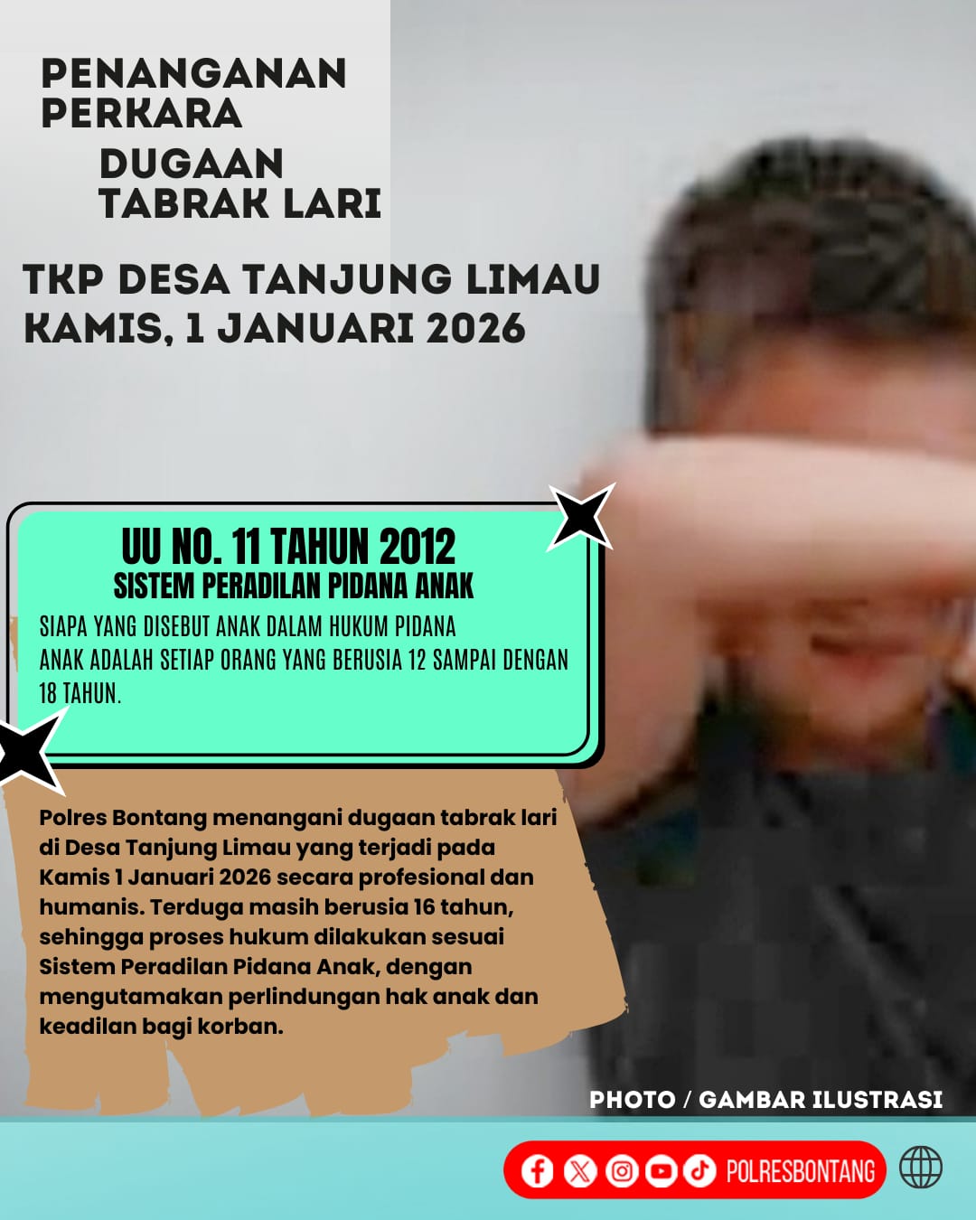 Kapolres Bontang melalui Kasat Lantas AKP Purwo Asmadi menjelaskan bahwa penanganan perkara ini dilakukan sesuai ketentuan Undang-Undang Nomor 11 Tahun 2012 tentang Sistem Peradilan Pidana Anak (SPPA), dengan mengedepankan prinsip perlindungan hak anak tanpa mengabaikan rasa keadilan bagi korban.